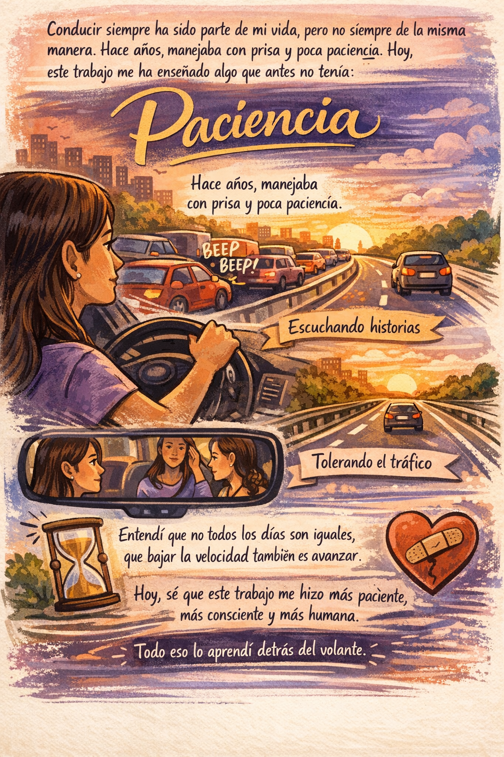 Conducir siempre ha sido parte de mi vida, pero no siempre de la misma manera. Hace años, cuando manejaba solo de forma particular, lo hacía con prisa, con poca paciencia y, muchas veces, reaccionando desde el enojo. El tráfico me desesperaba, los errores ajenos me irritaban y sentía que todo el mundo estorbaba.Hoy conduzco por trabajo, y aunque parezca contradictorio, ha sido justamente este oficio el que me ha enseñado algo que antes no tenía paciencia. La paciencia se aprende en la marcha. En los trancones interminables, en los días buenos y en los días difíciles, en las frustraciones que no siempre se pueden evitar. Pero, sobre todo, se aprende escuchando. Escuchando a las personas que se suben al carro con sus historias, sus cargas, sus silencios y sus palabras. Conducir dejó de ser solo manejar un vehículo. Se volvió un espacio de aprendizaje, de tolerancia y de crecimiento personal. Entendí que no todos los días son iguales, que no todas las personas vienen del mismo lugar emocional y que bajar la velocidad no solo del carro, sino de la vida también es avanzar.Hoy reconozco que este trabajo me ha transformado. Me hizo más paciente, más consciente y más humana. Y eso, definitivamente, no lo aprendí en ninguna otra parte que no fuera detrás del volante.